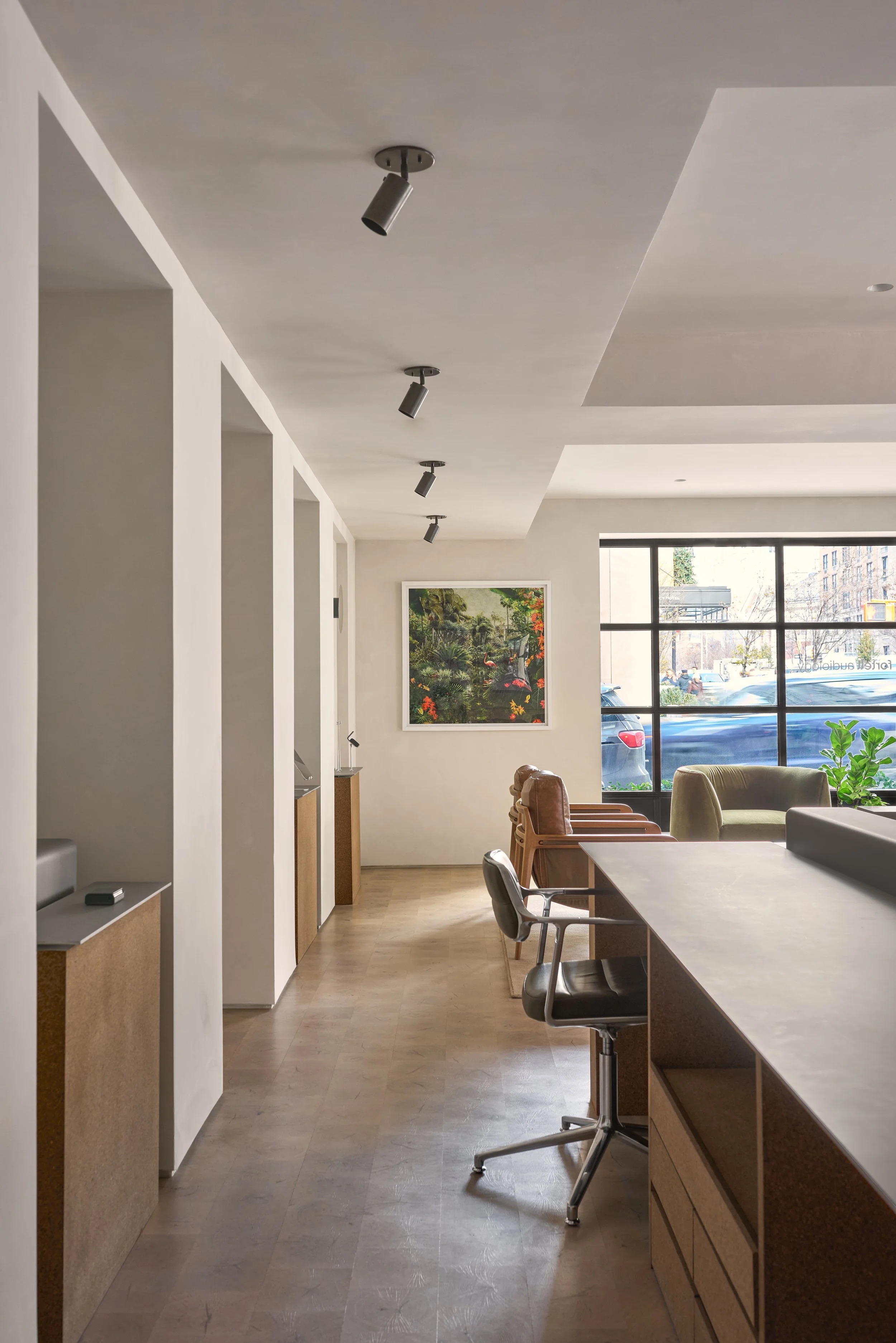 Located on Park Avenue in a prominent corner retail space, this clinic marks the first physical location for the growing Fortell brand. Designed in close collaboration with the Fortell team, the space translates the company’s core values -precision, innovation, and care - into a welcoming and highly functional environment.